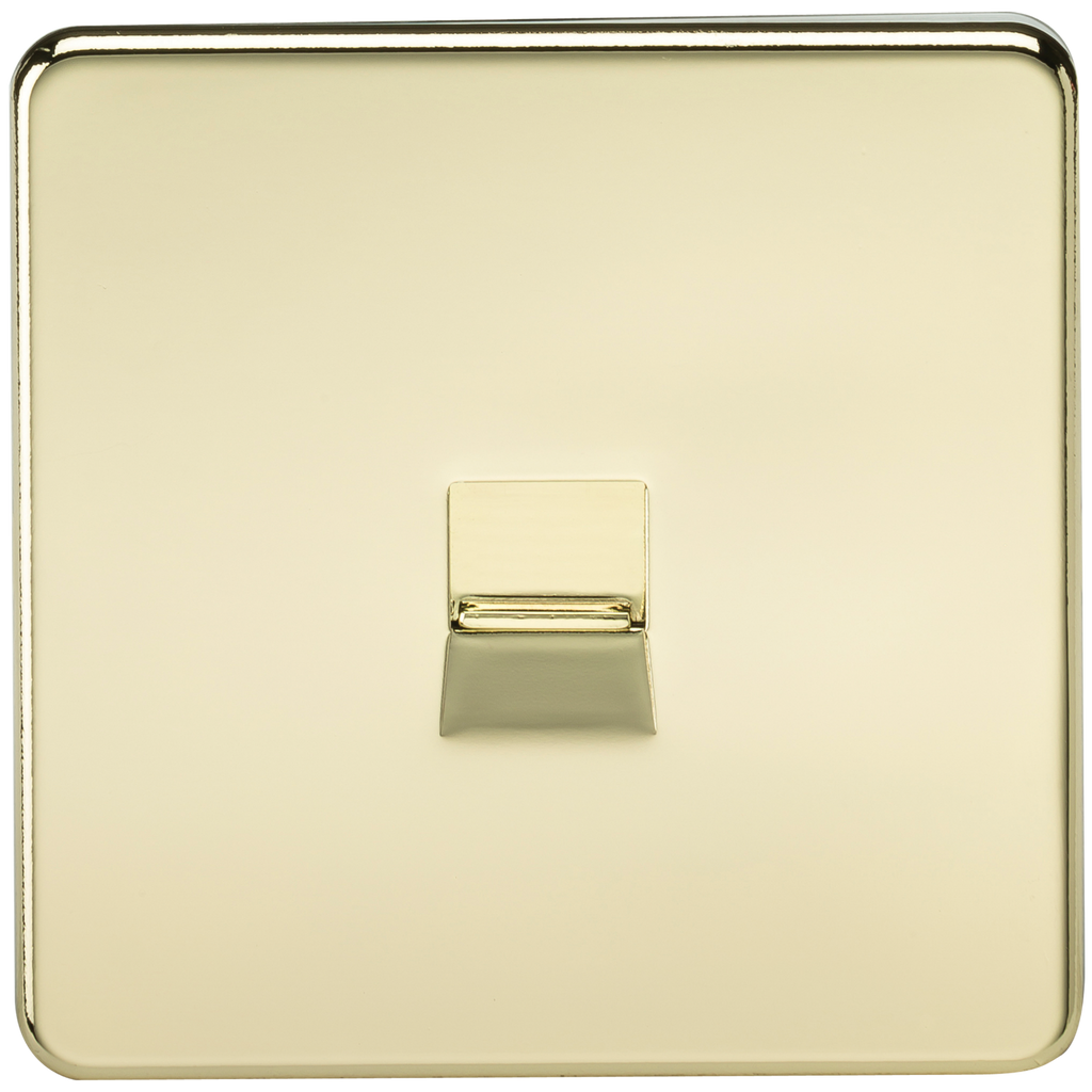 The Knightsbridge SF7400PB Screwless Telephone Extension Socket in Polished Brass is a decorative single wall plate ideal for the modern home. Secondary or extension telephone socket are used to run additional points of the original master socket.