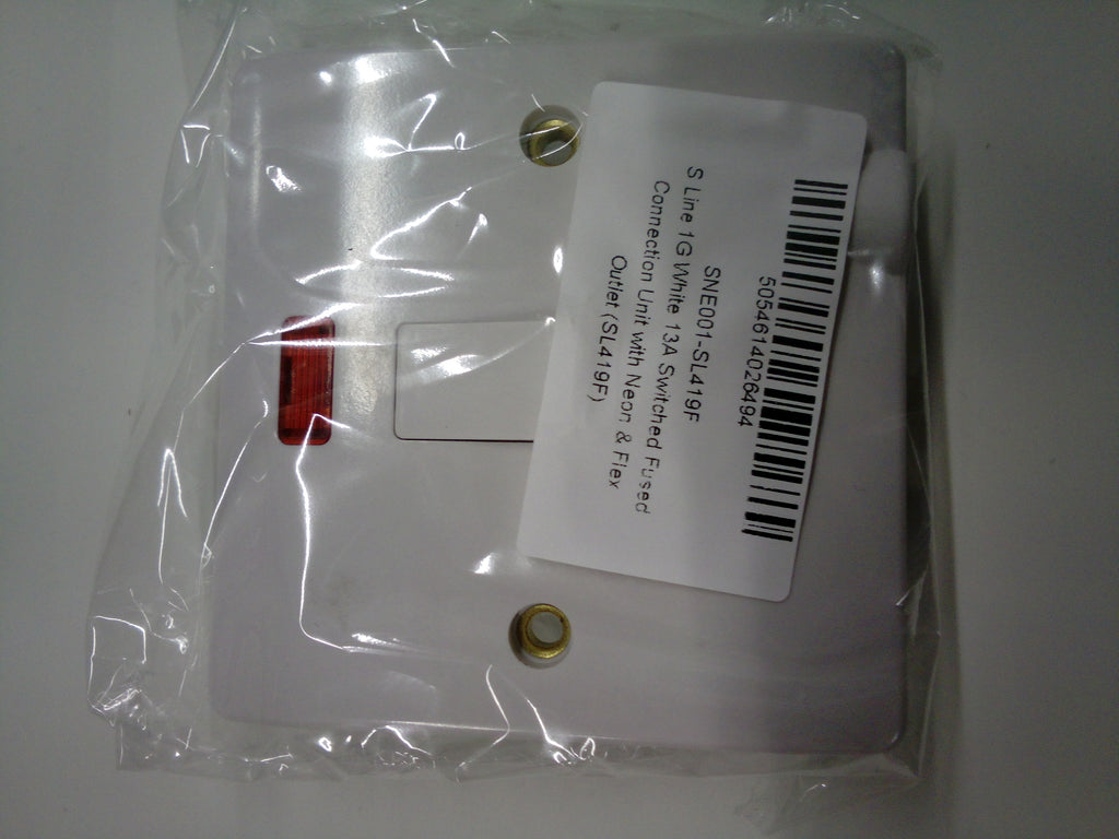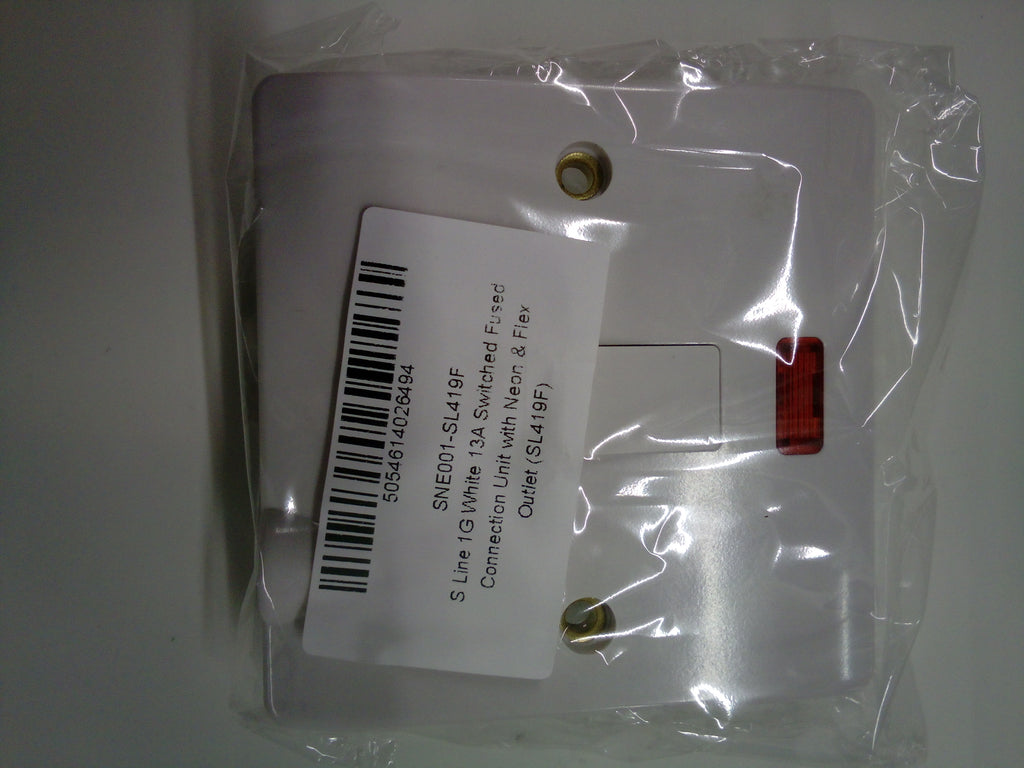 The SL419F from ESRs S-Line Range is a switched 13A fused connection unit with neon power indicator and flex cable outlet. In a white finish with smooth curved edges, these sockets will blend into any modern building with ease.