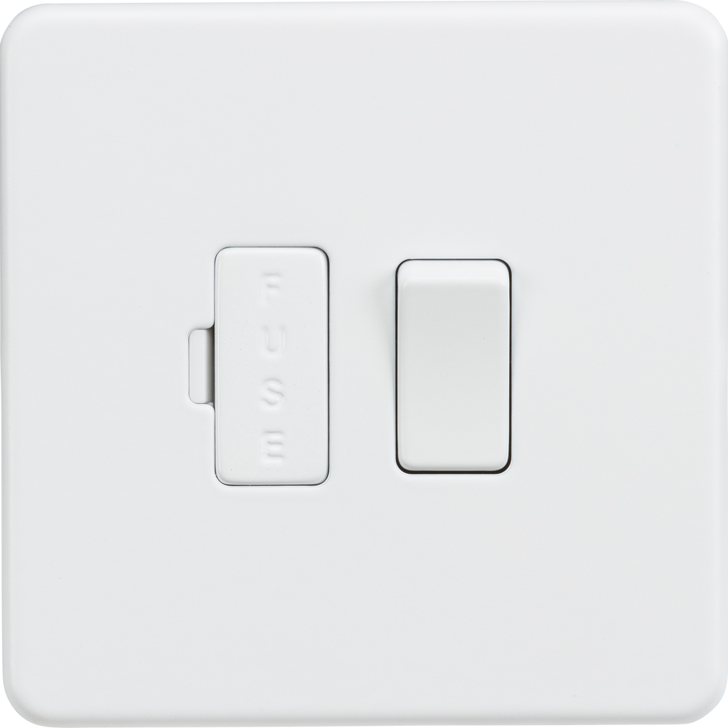Fused spur solution in flawless Screwless low profile metal design with matching fuse holder and rocker - 13A rated - Switched - Screwless low profile design with built in gasket - Certified to BS 1363-4 - Minimum mounting box depth 25mm