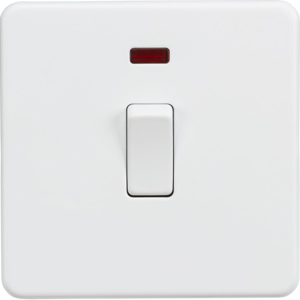 Ideal for fixed appliances such as water heaters, flawless Screwless low profile metal design with matching rocker - 20A rated - Double pole - Switched - With neon indicator - Screwless low profile design with built in gasket - Certified to EN 60669-1 - Minimum mounting box depth 25mm