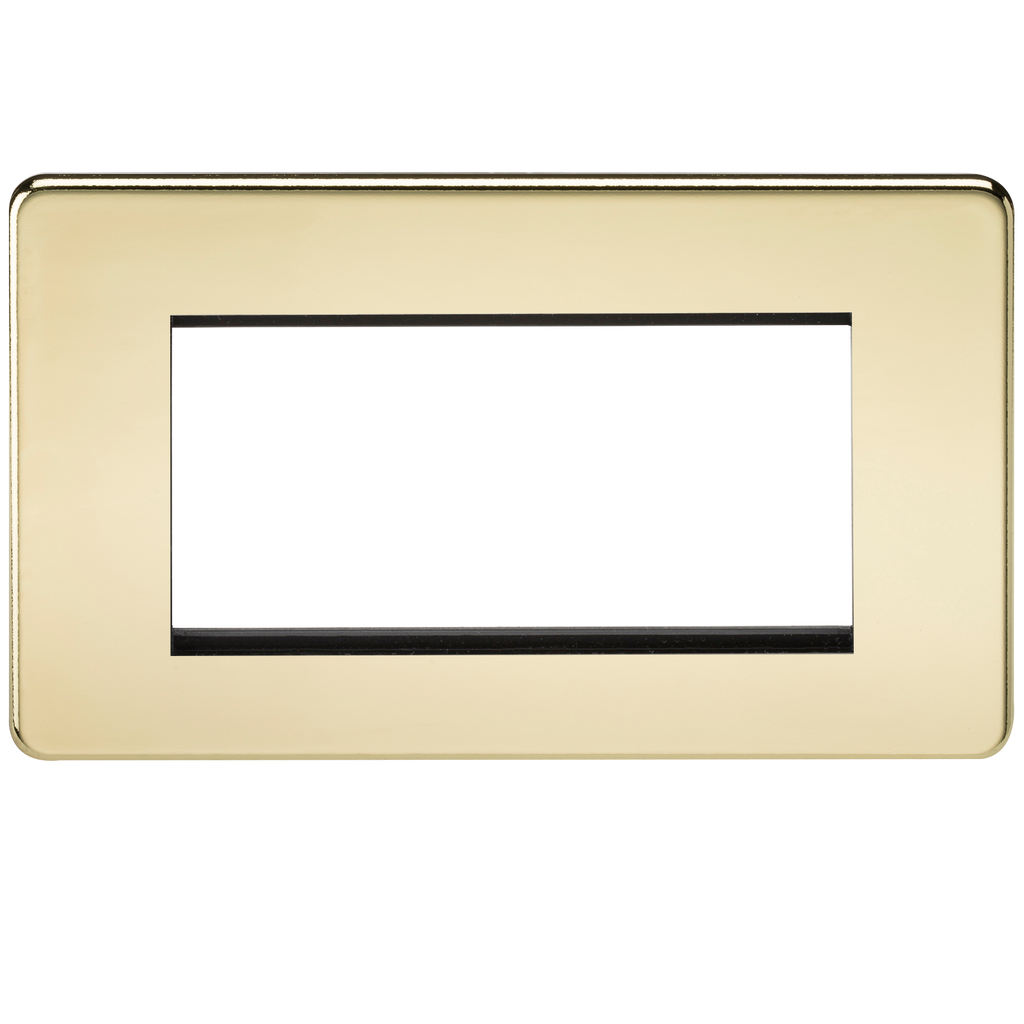 Suitable for use with euro module inserts. Ideal for creating bespoke TV/DATA/HDMI/USB/TEL installations. Flawless Screwless design - Accepts four 25 x 50mm , or two 50 x 50mm euro module or a combination of both - Screwless low profile design with built in gasket - Minimum mounting box depth: dependent on euro module used