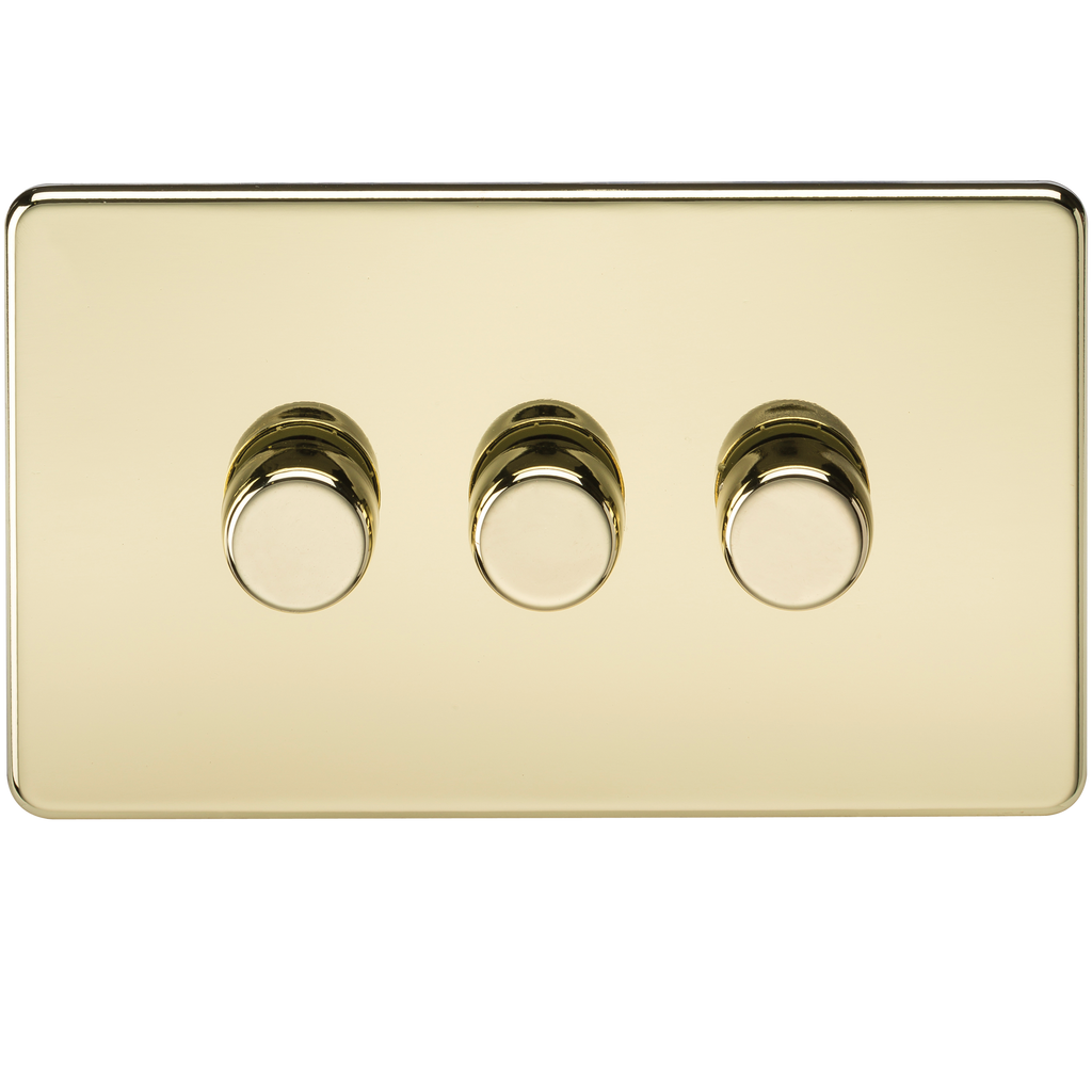10-200W 3G 2 Way 230V Screwless Polished Brass Electric Dimmer Switch Led Compatible