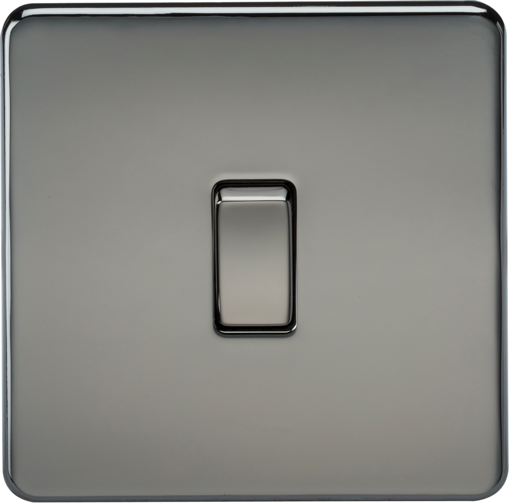 The Knightsbridge 10 Amp 1G 2 way Screwless Switch in Black Nickel is the ideal decorative upgrade for use in the modern home, businesses and hotels. The screwless design features an easy clip on cover with an internal gasket for moisture protection and matching screws. It has an ultra slim profile and is constructed from durable and high temperature resistant thermoset plastic.