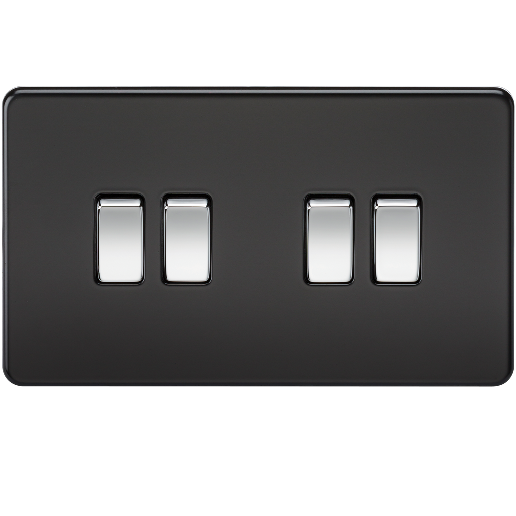 10A 4G 2 Way 230V Screwless Matt Black Electric Wall Plate Switch