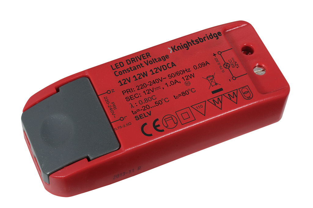 The KnightsBridge 12CDCA, 12 Volt Variable Load 0-12 Watt DC Driver suitable for indoor use and ideal for use with single colour LED Flex including the IP20 12V available in Cool White, Warm White & Blue.