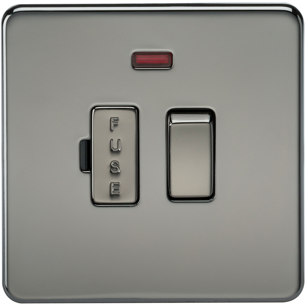 The Knightsbridge SF6300NBN Screwless switched fused spur unit or fused connection unit with neon in Black Nickel. An electrical switch with a built in 13 amp fuse designed for appliances that do not have or require a fused plug top.