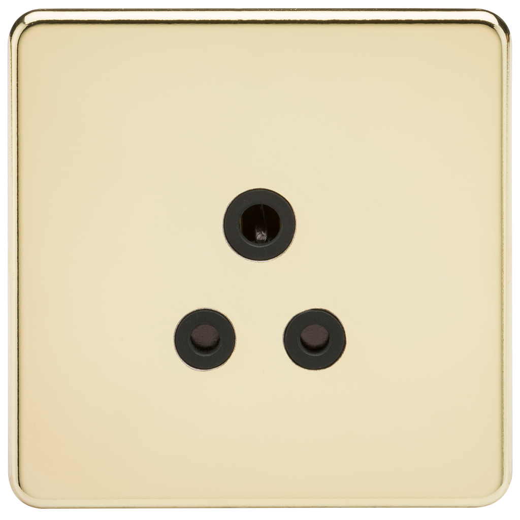 The Knightsbridge SF5APB 5A 1G Polished Brass Unswitched Socket is the ideal decorative upgrade for use in the modern home, businesses and hotels. The screwless design features an easy clip-on cover with an internal gasket for moisture protection and matching screws. It has an ultra-slim profile and is constructed from durable, and high-temperature resistant thermoset plastic.