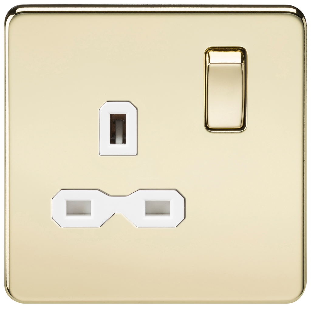 The Knightsbridge SF7000PB / SF7000PBW 13A 1G DP Polished Brass Switched Socket is the ideal decorative upgrade for use in the modern home, businesses and hotels. The screwless design features an easy clip-on cover with an internal gasket for moisture protection and matching screws. It has an ultra-slim profile and is constructed from durable, and high-temperature resistant thermoset plastic.