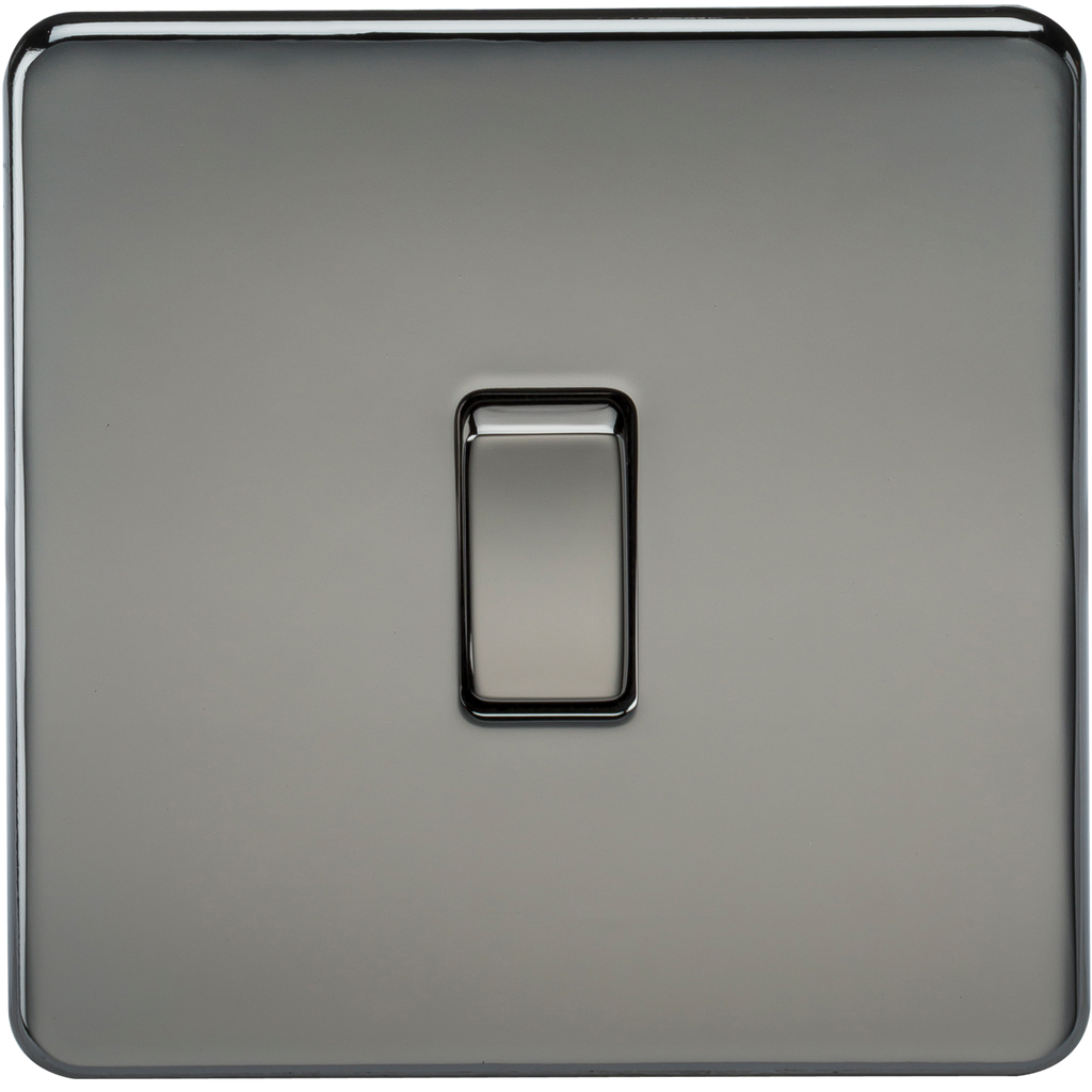 The Knightsbridge 20 Amp 1G DP Screwless Black Nickel Switch is the ideal decorative upgrade for use in the modern home, businesses and hotels. The screwless design features an easy clip on cover with an internal gasket for moisture protection and matching screws. It has an ultra slim profile and is constructed from durable and high temperature resistant thermoset plastic.