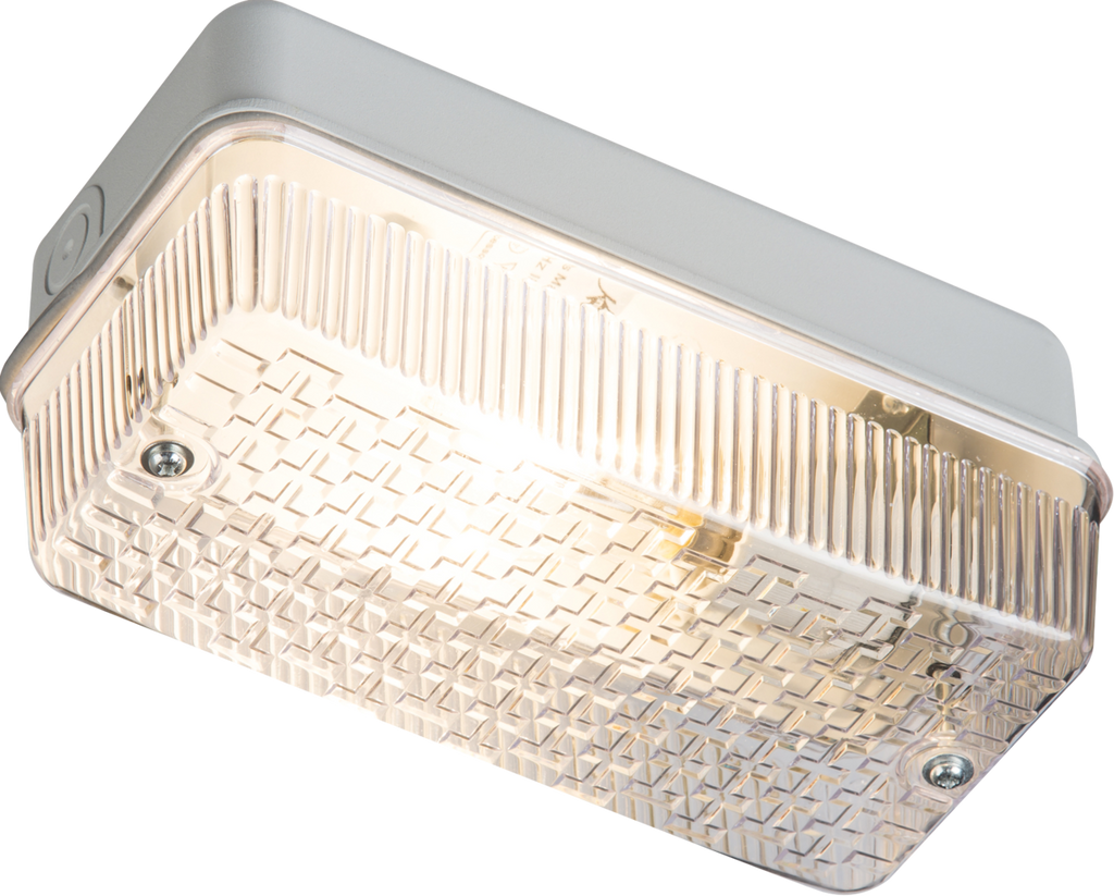 The BHMB100, Clear Prismatic Bayonet Cap Bulkhead by Eterna with White Aluminium Base and Clear Prismatic Cover is ideal for both internal and external use.
