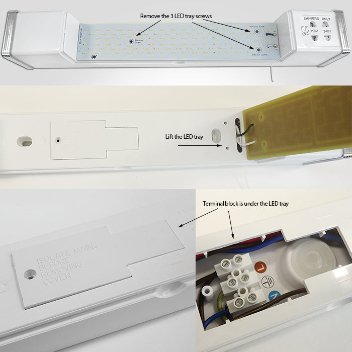 This Eterna LED Dual Voltage Shaver Light with socket is suitable for above sink installations in bathrooms and damp areas. This shaver light includes permanent 230V & 115V power to the shaver sockets with a pull cord to allow for isolated illumination.