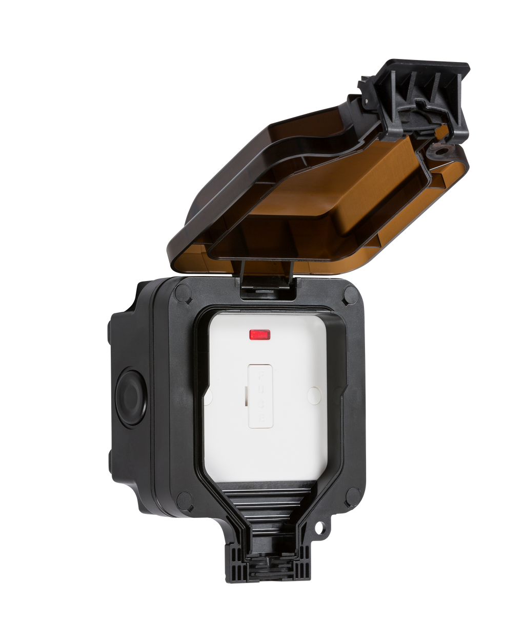 Outdoor fused spur solution with power on/off indication that can be seen through the transparent lid. Multiple 20mm cable entries/exits allow for optimum positioning. Wider cable channels and casing will accommodate most plugs with thick over-moulded strain reliefs typically associate with outdoor products.