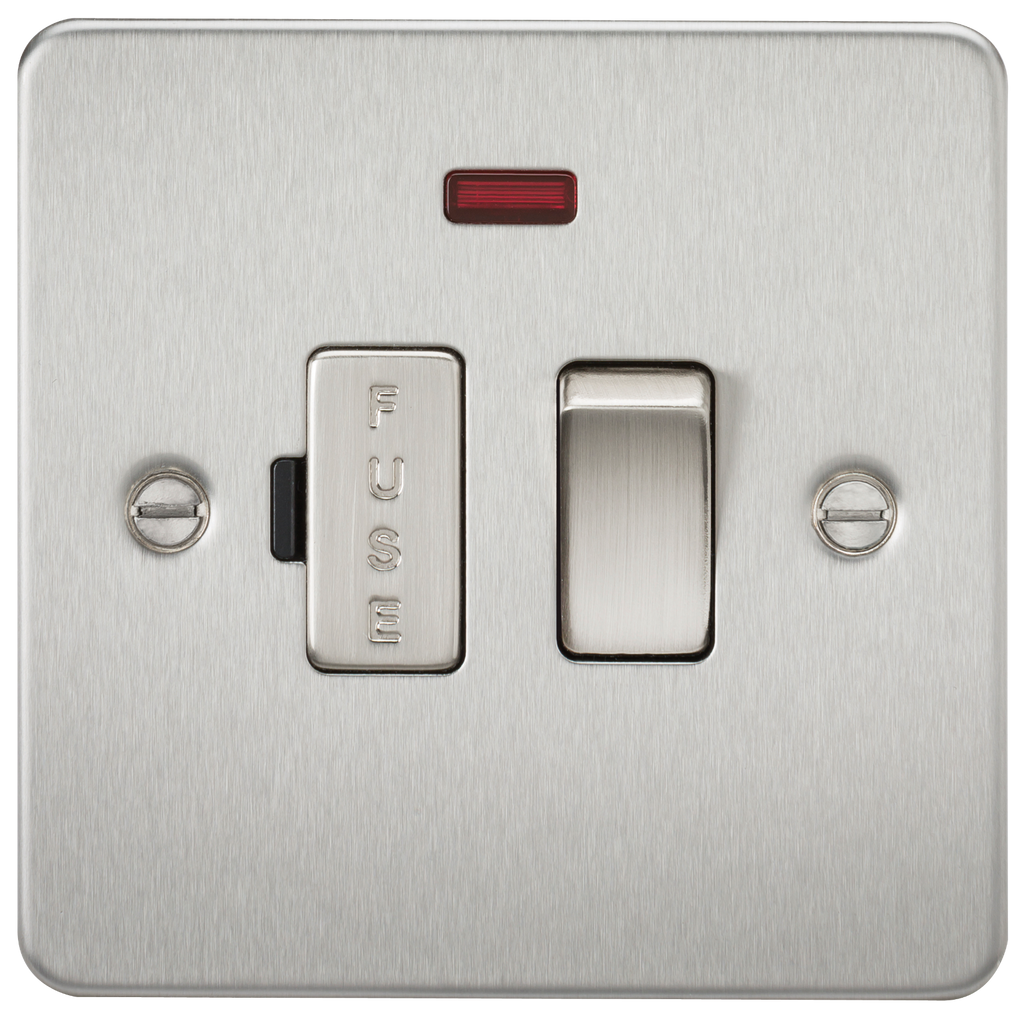 13A Switched Fused Spur with Neon Flat Plate - Brushed Chrome