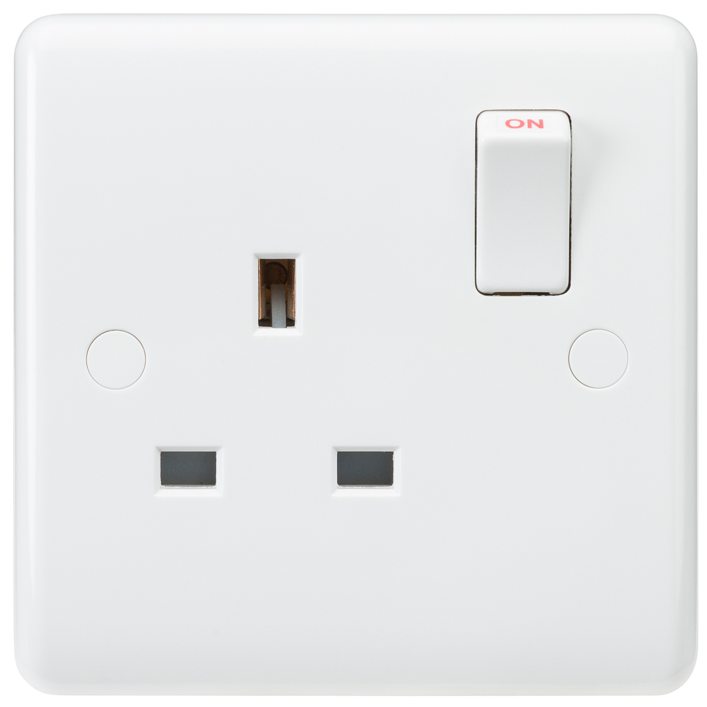 Gently contoured 7mm plate with rounded edges and anti-microbial properties, includes screw cap covers. - 13A rated - Single Pole - Min. Mounting box depth: 25mm - Certified to BS 1363-2:2016+A1:2018 - ASTA approved License No. 1412 - Packed in Individual Knightsbridge rip top polybag with euro slot