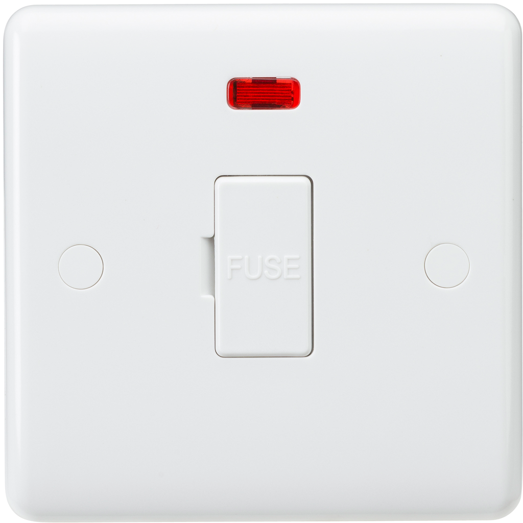 Gently contoured 7mm plate with rounded edges and anti-microbial properties - 13A rated - Fused Spur unit - With neon - Includes screw cap covers - Certified to BS 1363-2 - Supplied in Knightsbridge rip top polybag with euro slot