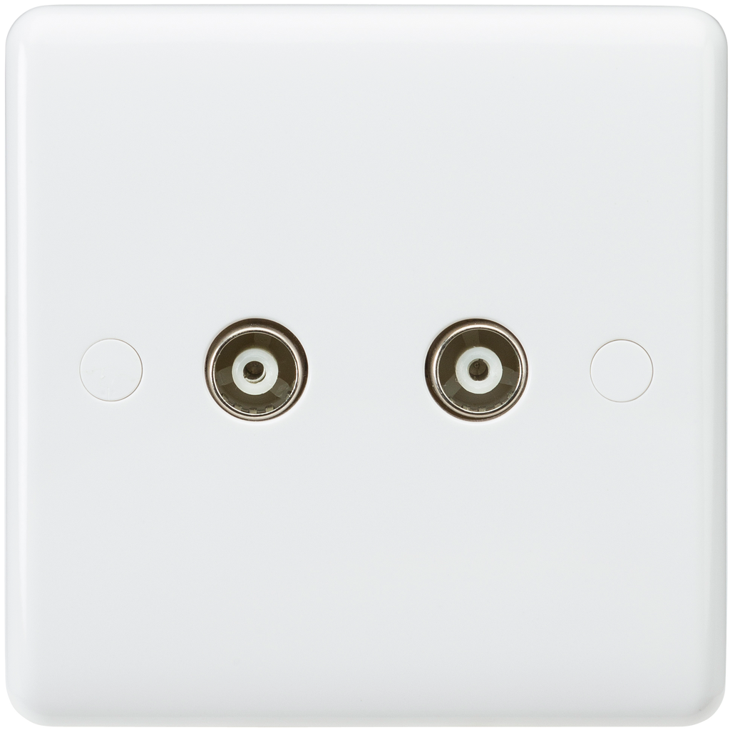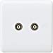 Gently contoured 7mm plate with rounded edges and anti-microbial properties - Twin Coaxial TV outlet - Non-isolated - Includes screw cap covers - Supplied in Knightsbridge rip top polybag with euro slot