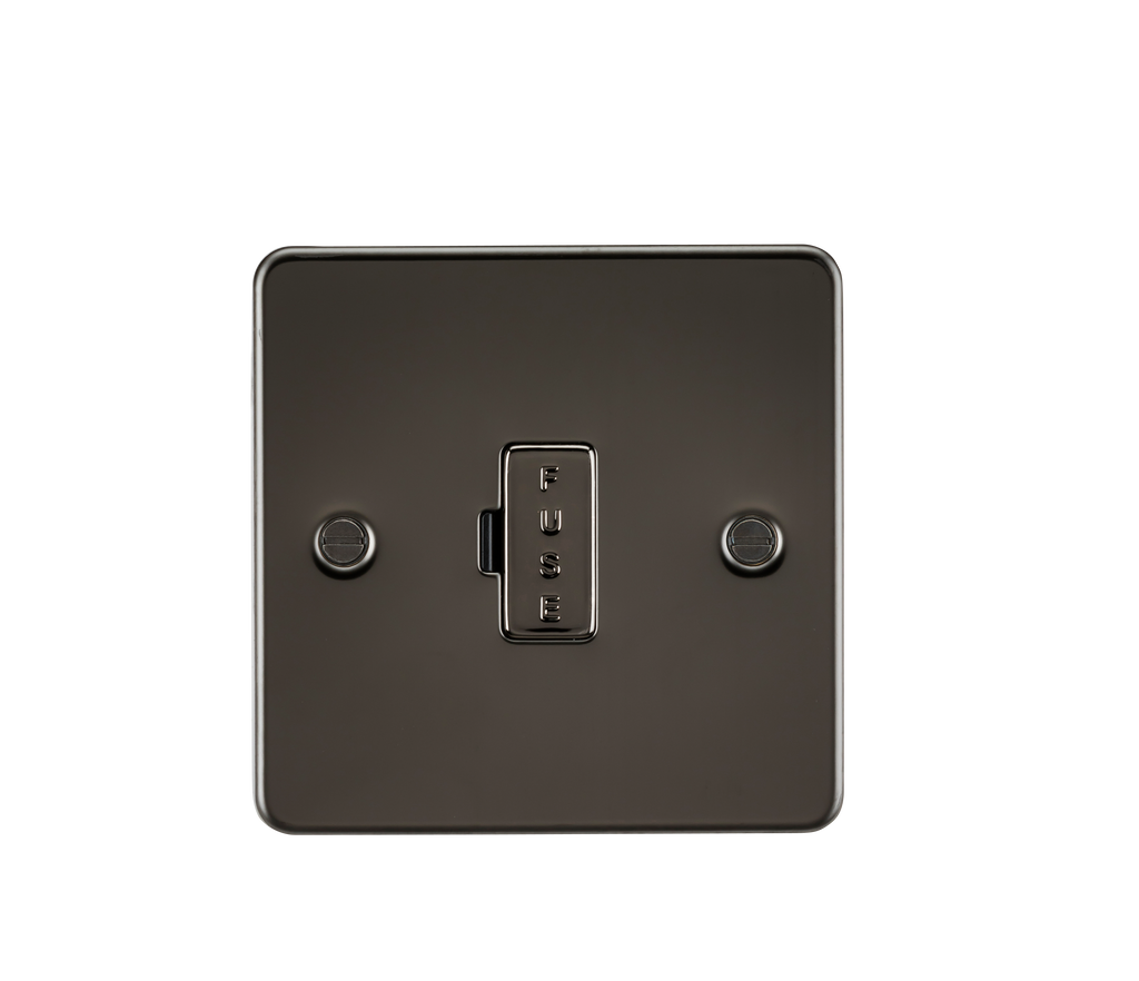 Fused spur solution in Flat Plate low profile metal design with matching fuse holder. - 13A rated - Ultra low profile design with built in gasket - Certified to BS 1363-4 - Minimum mounting box depth 25mm