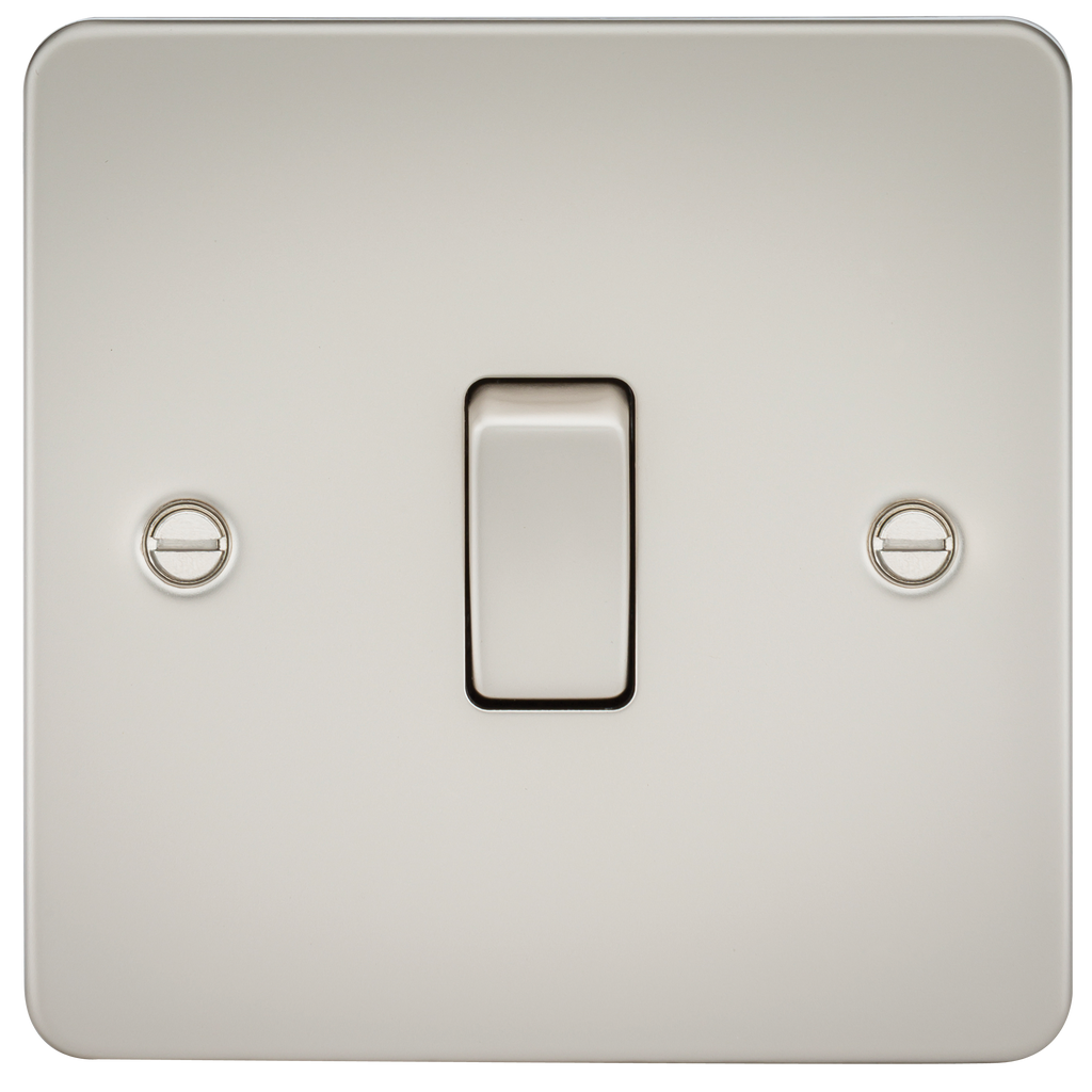 Ideal for fixed appliances such as water heaters, Flat Plate low profile metal design with matching rocker - 20A rated - Double pole - Ultra low profile design with built in gasket - Certified to EN 60669-1 - Minimum mounting box depth 25mm