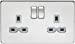 Perfect finishing touch to any modern home, flawless Screwless low profile metal design with matching metal rockers, unique socket insert design that is completely hidden once a plug is inserted. - 13A 2G Switched Socket - Double Pole Switches - Fitted with twin earth terminals - Screwless low profile design with built in gasket - Certified to BS 1363:2 - Minimum mounting box depth 25mm