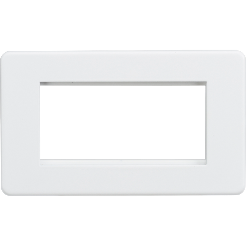 Suitable for use with euro module inserts. Ideal for creating bespoke TV/DATA/HDMI/USB/TEL installations. Flawless Screwless design - Accepts four 25 x 50mm , or two 50 x 50mm euro module or a combination of both - Screwless low profile design with built in gasket - Minimum mounting box depth: dependent on euro module used