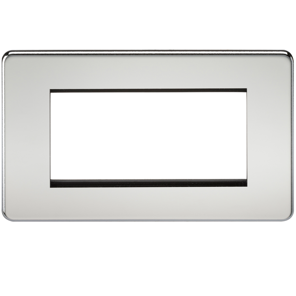 Suitable for use with euro module inserts. Ideal for creating bespoke TV/DATA/HDMI/USB/TEL installations. Flawless Screwless design - Accepts four 25 x 50mm , or two 50 x 50mm euro module or a combination of both - Screwless low profile design with built in gasket - Minimum mounting box depth: dependent on euro module used