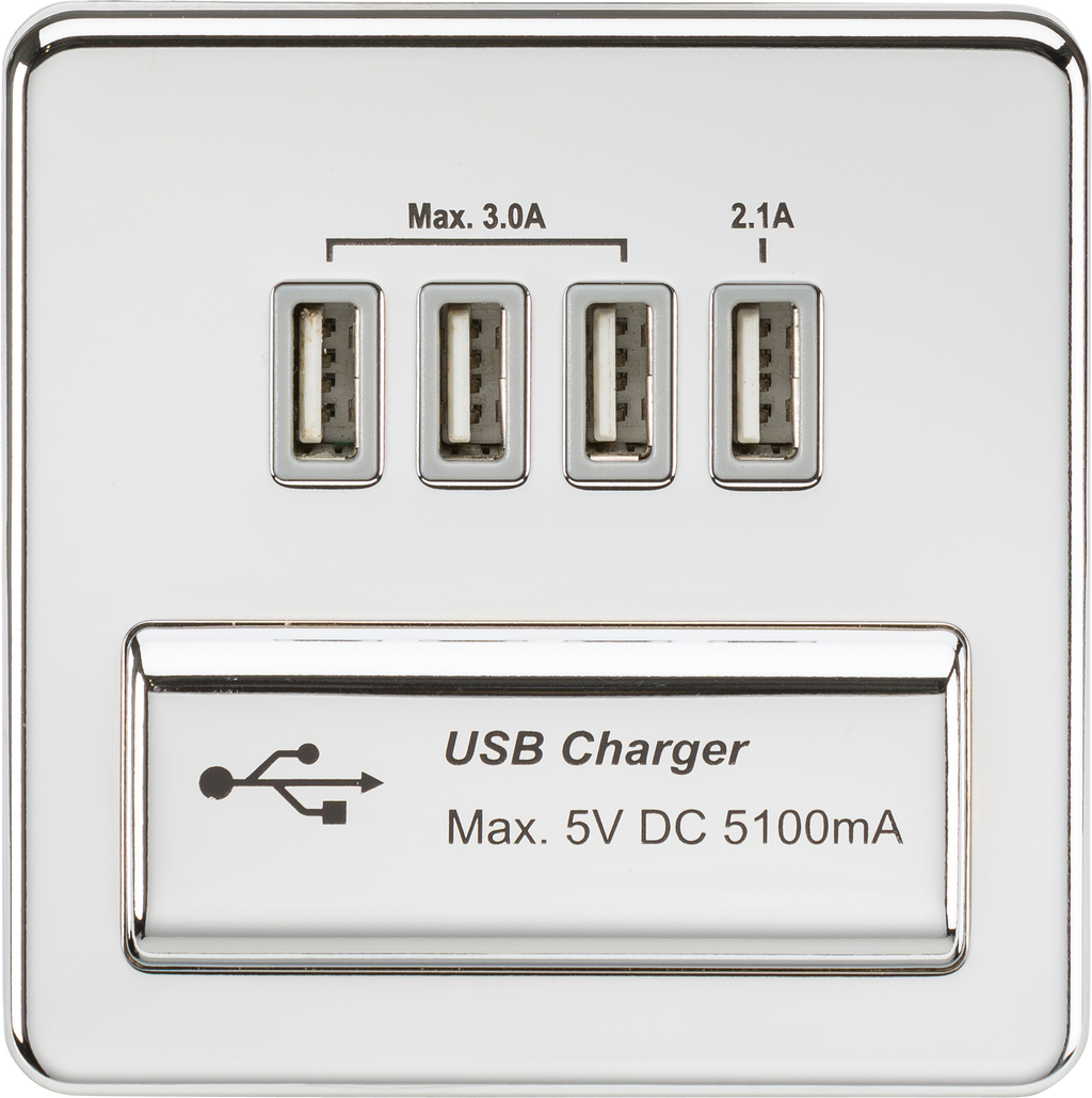 Screwless Quad USB charger Outlet (5.1A) - Polished chrome with grey insert